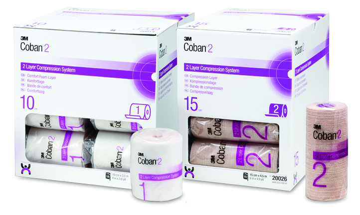 Le système de bandage compressif à deux couches Coban est conçu pour offrir un confort constant lors de la compression thérapeutique utilisée pour le traitement des patients souffrant d’une insuffisance veineuse et dont l’IPCB se situe entre 0,8 et 1,0 mmHg. Produit breveté, ce système de bandage compressif à deux couches a été éprouvé en clinique.